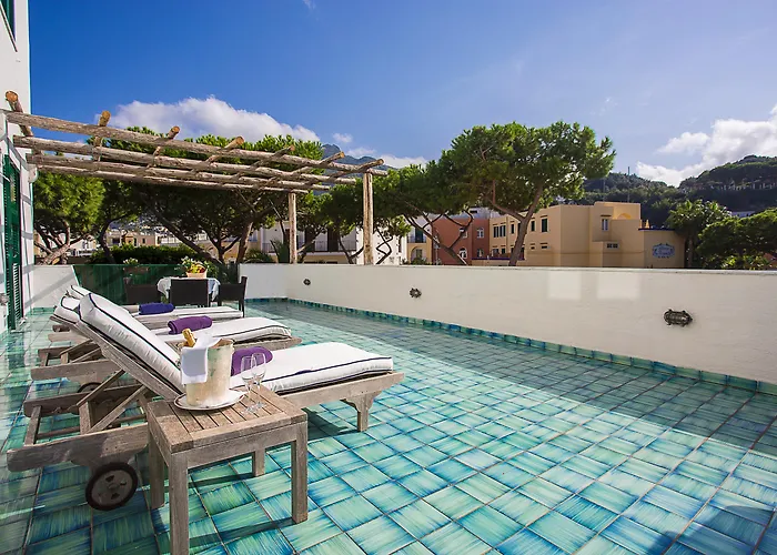 Trovandosi nel quartiere Lacco Ameno, quest'albergo dista 10 minuti a piedi dal centro di Lacco Ameno. Potrete raggiungere lo Stabilimento Termale Negombo a una distanza di approssimativamente 20 minuti a piedi. Una spiaggia privata si trova a una distanza di più o meno 9 minuti a piedi. La fermata dell'autobus Lacco Ameno è posizionata ad appena 600 metri di distanza.